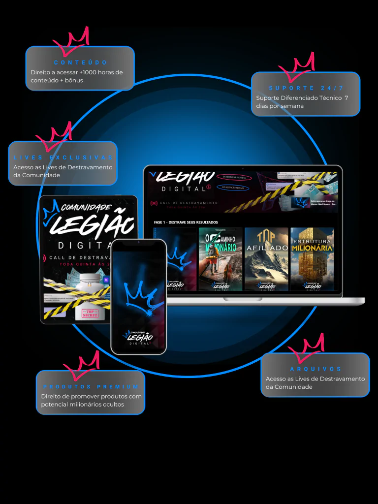 Você vai receber o convite exclusivo da legião, para participar das aulas ao vivo com o mentor e todo o clã. Se prepare para um acompanhamento e direcionamento que você nunca viu, são Aulas Dinâmicas e diretas ao ponto com Analises de Campanha AO VIVO TODA SEMANA 100% Práticas.